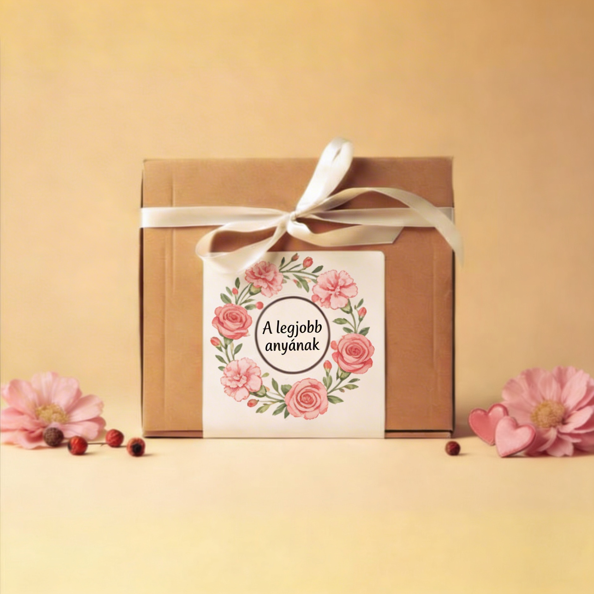 Egyedi, névre szóló üdvözlőkártya a csomagba rejtve.